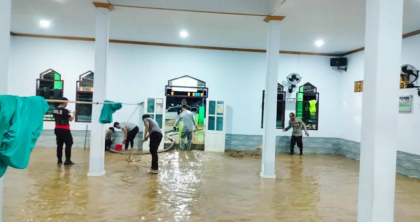 Tak hanya itu saja, ketika air mulai surut, pihaknya pula turut melakukan pembersihan lumpur di rumah dan tempat ibadah (Masjid), sekaligus tumpukan sampah yang menutupi ruas jalan.