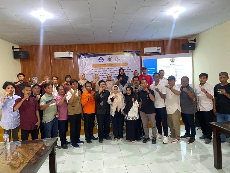 Kegiatan pengabdian kepada masyarakat ini dilakukan dengan skema Pemberdayaan Kemitraan Masyarakat (PKM). Tim PKM tersebut berasal dari program vokasi UNG yang diketuai Farid, M.Kom, dan beranggotakan Ir. Mohammad Imran, ST., M.Ars, serta Reinal Putalan, S.Pi., M.Si. Kali ini tim PKM melakukan kegiatan berupa pelatihan dan pendampingan kapasitas masyarakat melalui program AIR-MBR (Awasi, Identifikasi dan Respon – Mitigasi Bencana dan Resiliensi), berlangsung di aula Key’s Cafe, Kelurahan Bugis, Kecamatan Dumbo Raya, Kota Gorontalo, Rabu (16/7).