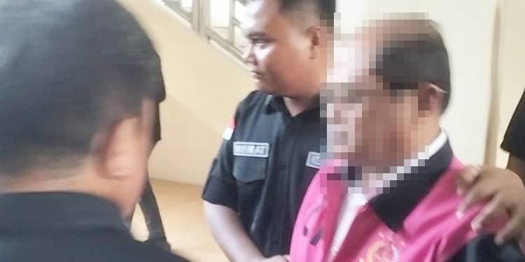 Pasalnya, keduannya sudah mengenakan rompi merah jambu khas tahanan kejaksaaan. Tangan ke duanya juga diborgol, dan langsung digiring menuju mobil tahanan.