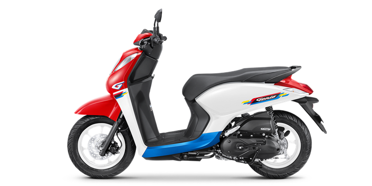 Skutik 110cc itu kini tampil lebih berani dengan kombinasi warna baru yang retro sekaligus fashionable. Tersedia dua warna spesial di tipe CBS: Vibrant Tri-Tone (merah-putih-biru) dan Vibrant Black & White — lengkap dengan pelek putih yang terasa klasik dan tetap segar.