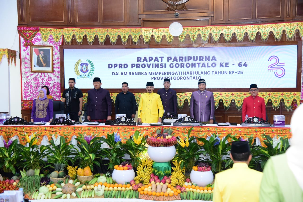 gorontalopost.co.id – Provinsi Gorontalo merayakan Hari Ulang Tahun (HUT) ke 25, Jumat (5/12). Dalam momentum ini, Gubernur Gorontalo Gusnar Ismail menyampaikan refleksi capaian pembangunan daerah pada Rapat Paripurna HUT ke-25 Provinsi Gorontalo, di gedung DPRD siang tadi. Gusnar menegaskan momentum ini sebagai komitmen memperkuat arah pembangunan daerah.