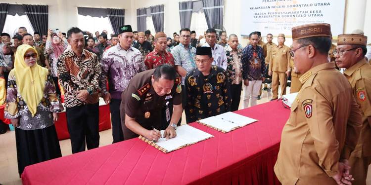 Gorontalopost.co.id, GORONTALO UTARA — Sebanyak 123 Ketua Badan Permusyawaratan Desa (BPD) se-Kabupaten Gorontalo Utara dilibatkan Kejaksaan Negeri Gorontalo Utara dalam mencegah tindak pidana korupsi di Desa. Hal ini ditandai dengan penandatanganan Perjanjian Kerja Sama bertepatan di momen Hari Anti Korupsi Sedunia (Hakordia) tahun 2025 baru-baru ini.