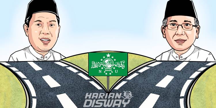 Yahya Cholil Staquf adalah ketua umum PBNU hasil Muktamar di Lampung empat tahun lalu. Zulfa Mustofa adalah penjabat ketua umum PBNU hasil sidang pleno di Hotel Sultan Jakarta pekan lalu.