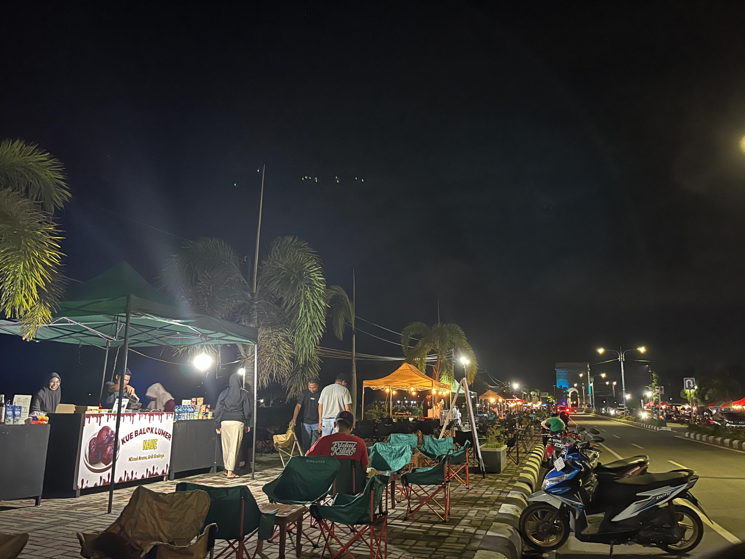 Di tengah keramaian itu, salah satu pelaku usaha kuliner yang menarik perhatian pengunjung adalah Kue Balok Lumer, yang terus didatangi pembeli dan menjadi bagian dari dinamika usaha kuliner malam di Center Point.