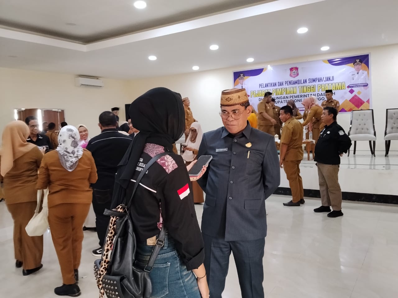 gorontalopost.co.id- Bupati Bone Bolango, Ismet Mile melakukan perombakan kabinet. Kali ini menyasar empat pejabat pimpinan tinggi pratama. Pelantikan berlangsung Seenin, 22 Desember 2025 di Aula Lupa Lelah, Kantor Bupati Bone Bolango. Sekretaris Daerah (Sekda) Kabupaten Bone Bolango, Iwan Mustapa, menjelaskan bahwa pelantikan ini merupakan tahap pertama dari lima rekomendasi jabatan yang telah disetujui. Berdasarkan hasil seleksi dan pertimbangan matang, empat pejabat yang resmi menduduki posisi baru adalah: