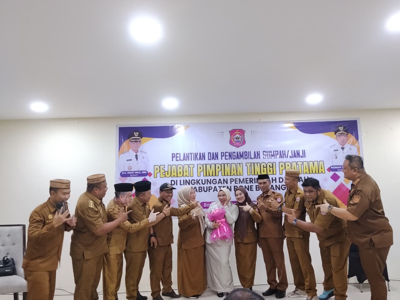 gorontalopost.co.id-Pelantikan pejabat pimpinan tinggi pratama di lingkungan Pemerintah Daerah Kabupaten Bone Bolango, Senin (22/12/2025), menjadi momen penuh makna bagi Sri Mulyani Lalijo, S.E., M.Si. Ia resmi dilantik sebagai Kepala Badan Perencanaan Pembangunan Daerah, Penelitian dan Pengembangan (Bappeda) dalam prosesi yang berlangsung di Aula Kantor Bupati Bone Bolango, pukul 15.32 WITA.