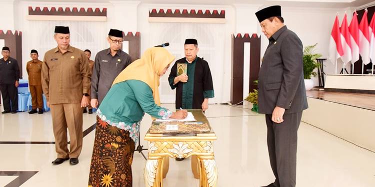 Gorontalopost.co.id — Gubernur Gorontalo Gusnar Ismail melantik 39 pejabat fungsional di aula rumah jabatan gubernur, Selasa (23/12/2025). Pelantikan turut dihadiri oleh Sekretaris Daerah Provinsi Gorontalo Sofian Ibrahim, Asisten Bidang Administrasi Pemerintahan Sukril Gobel, serta sejumlah pimpinan organisasi perangkat daerah.