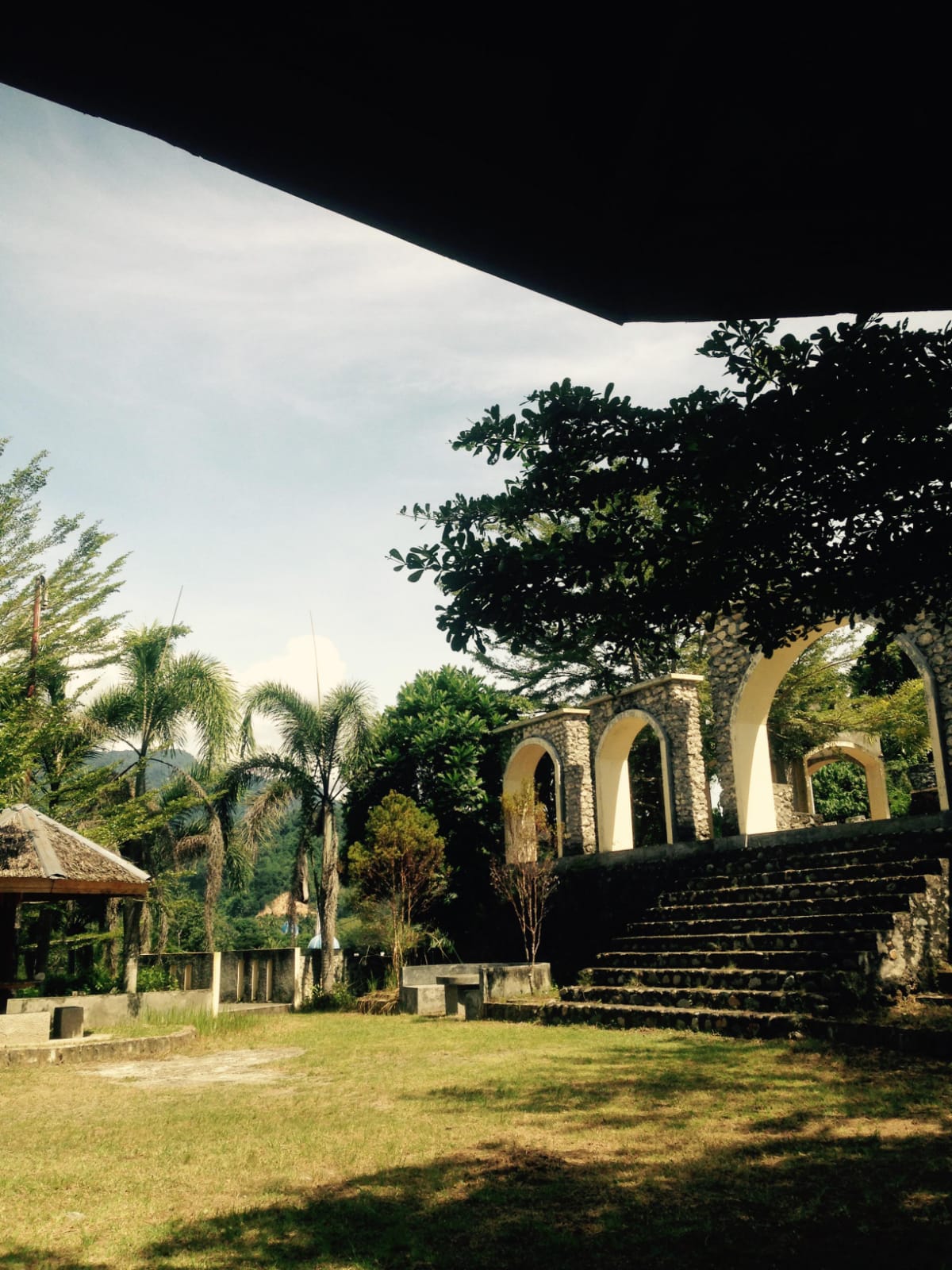 gorontalopost.co.id – Angin sore di puncak Gunung Pombolu, Desa Ulanta, berembus tanpa hambatan. Tidak ada lagi riuh rendah suara wisatawan, tidak ada lagi aroma makanan dari lapak pedagang, pun tidak ada lagi antrean kendaraan di kaki bukit. Yang tersisa hanyalah sebuah bangunan batu raksasa yang berdiri membisu, menatap hampa ke arah lembah Bone Bolango.
