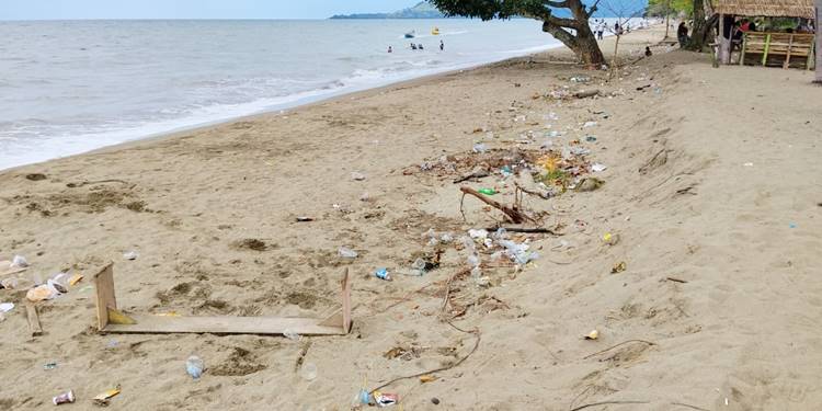 Pantauan Gorontalo Post pada Ahad (4/1/2026) sekitar pukul 14.26 Wita, sampah tampak berserakan di sepanjang pinggiran pantai. Sampah tersebut mulai menumpuk menjelang awal tahun, seiring meningkatnya jumlah wisatawan yang datang untuk berlibur, termasuk yang memilih menginap atau berkemah di area pantai.