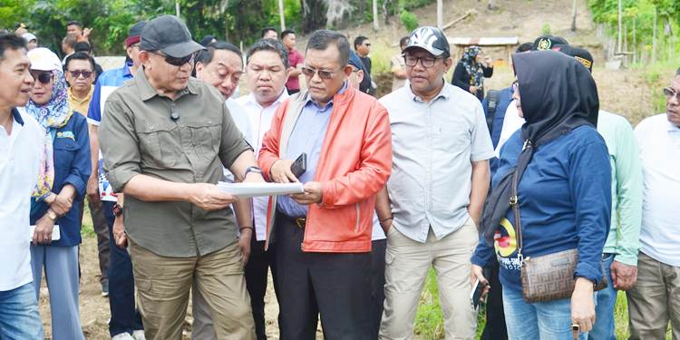 Gorontalopost.co.id, GORUT — Program hilirisasi industri ayam terintegrasi pangan diseriusi. Gubernur Gorontalo Gusnar Ismail bersama Ketua Satgas Nasional Hilirisasi Industri Ayam Terintegrasi Pangan Ali Agus melakukan peninjauan lokasi pencanangan dan lahan pembangunan pabrik pengolahan ayam serta pakan pada Ahad (11/1). Peninjauan dilakukan di tiga titik yang berada di kecamatan Anggrek diantaranya desa Putiana, Pelabuhan Anggrek serta Desa Tolongio.