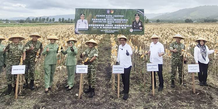 Gorontalopost.co.id, GORONTALO – Panen raya jagung di lokasi Yonif TP 824/MO’E’A menegaskan komitmen bersama dalam memperkuat ketahanan pangan di Provinsi Gorontalo. Kegiatan ini dihadiri Pangdam XIII Merdeka Mayjen TNI Mirza Agus dan Gubernur Gorontalo yang diwakili Sekdaprov Sofian Ibrahim, Rabu (21/1).