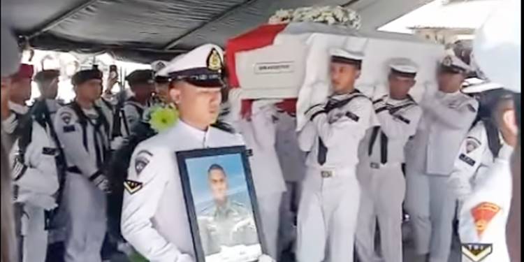“Hari ini kita laksanakan pemakaman secara militer pahlawan kita pahlawan bangsa telah gugur dalam melaksanakan tugas,” ujar Letkol Laut (P) Hanny.
