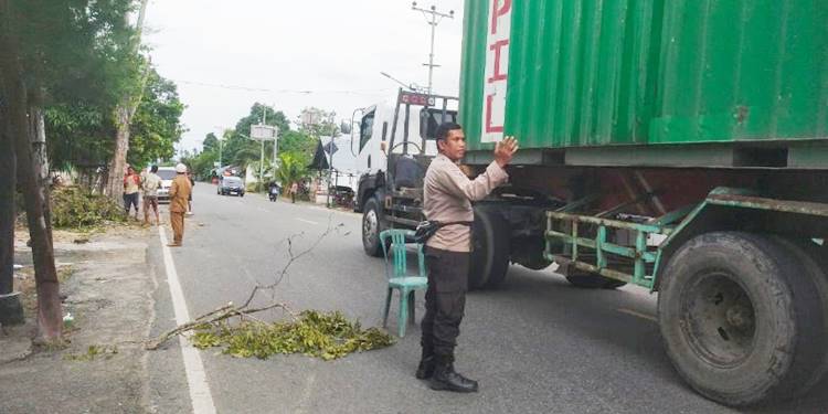 Untuk mengantisipasi adanya korban jiwa akibat dari penebangan pohon maupun pemotongan ranting pohon, personel Polsek Limboto Barat bergerak cepat melakukan pengamanan dan pengaturan arus lalu lintas.