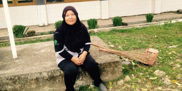 Di lingkungan para akademisi yang terdidik, ia merasa nyaman karena tidak pernah ada yang memandang rendah profesinya sebagai penyapu jalan. “Orang-orang di sini baik, mereka terdidik jadi tidak ada yang mencela saya. Itulah yang membuat saya betah sampai 13 tahun,” ungkapnya penuh syukur.