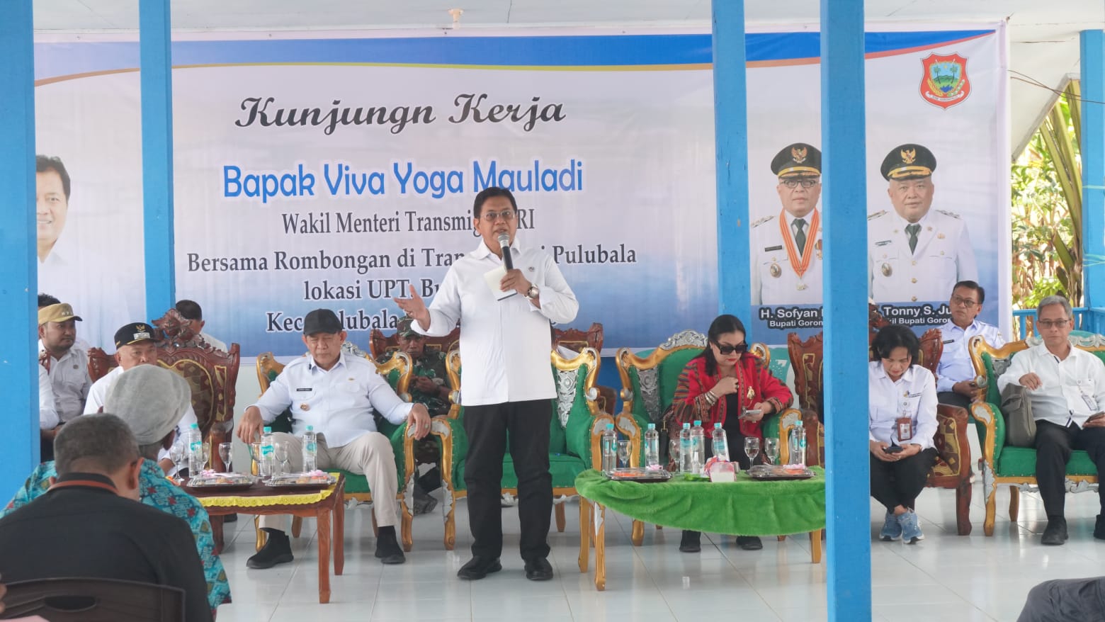Dalam kunjungnya di Kecamatan Pulubala, Kabupaten Gorontalo, Wamentrans Viva Yoga Mauladi menyerahkan 109 Sertifikat Hak Milik (SHM) milik warga transmigrasi di Kecamatan Pulubala, Kab. Gorontalo, Rabu, (8/4/2026). Penyerahan didampingi Gubernur Gusnar Ismail dan Wakil Bupati Tonny Yunus. Kedatangan Wamentrans Viva Yoga juga untuk meresmikan sejumlah proyek yang didanai kementriannya senilai Rp4,4 miliar. Diantaranya untuk pembangunan jalan non status ke kawasan transmigrasi, gedung balai pertemuan dan rehabilitasi sekolah.