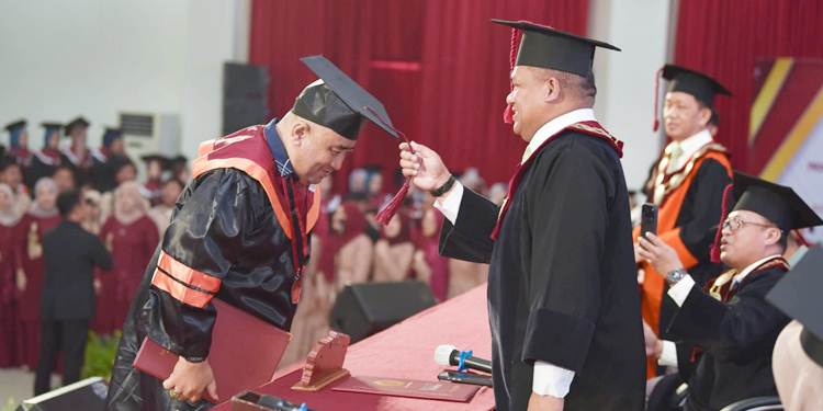 Ia juga mengingatkan bahwa gelar akademik bukanlah akhir dari perjalanan, melainkan awal untuk memberikan kontribusi nyata di masyarakat. “Terus menebarkan manfaat ilmu, menjunjung nilai integritas, dan menjaga karakter religius serta kemanusiaan di tengah tantangan global. Kesuksesan sejati bukan soal jabatan, tetapi sejauh mana ilmu dan keberadaan kalian bermanfaat bagi sesama,” pesannya.
